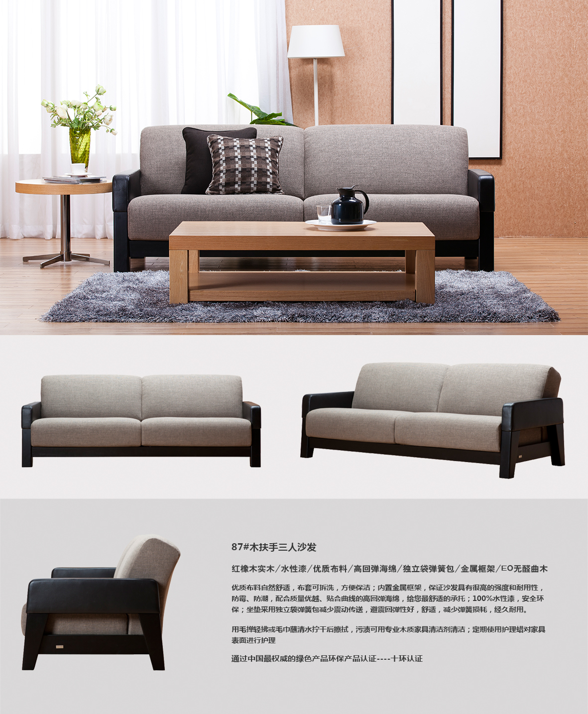 - 产品名称:87#木扶手三人沙发