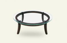实木脚玻璃圆茶几